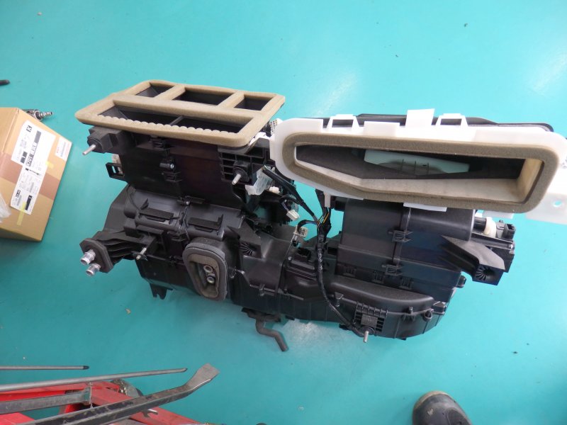 エバポレーターはヒーターユニットの内に有るので、LLCを抜き、ダッシュボードの脱着により交換。