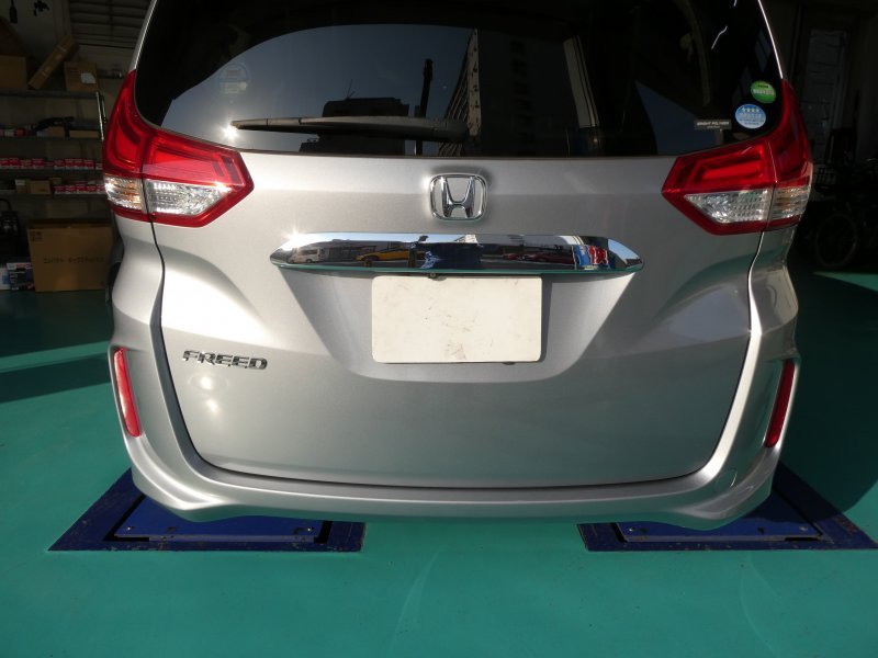 神奈川県横浜市保土ケ谷区|フリード (ホンダ)のキズ・へこみ直し事例(リアバンパー・サイドリテーナ・リア牽引用フックカバー損傷交換)