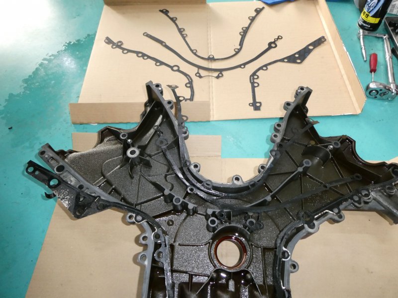 V型エンジンにて両ヘッドカバーパッキン交換においては国産も同じ作業となるため難しくはない。問題はフロントチェーンケース。かなり厄介でエンジン下ろしを視野に入れていた。しかし、オイルパンを外すことなく上から作業ができる大変ありがたいエンジンであり、時間はかかるものの、こちらの作業も難なく終了。