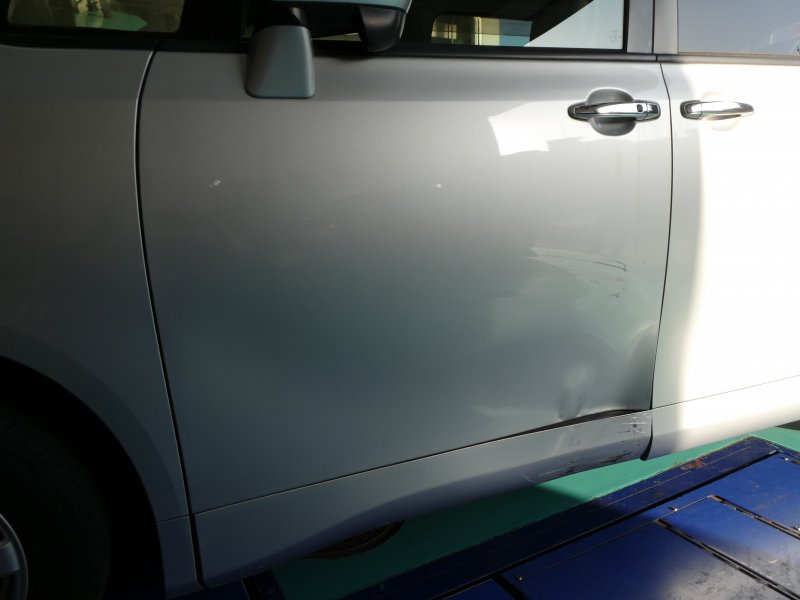 お客様のご要望で左フロントドアをリサイクル部品(同色部品)を使用して取り替えました
