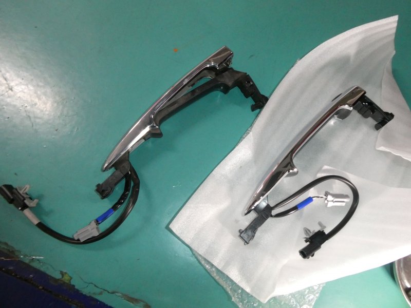 アウターハンドル(外ノブ)がメッキカバーの取付が劣化による損傷により開閉時に外れてしまう。リーフにおいての事例で数多くネット情報があるようだ。作業は普通に交換作業のみなので内張さえ外すことが出来れば難しくはない。センサーカプラーはノブ側に2本ついているので、付け替えを忘れずに組み上げる。最後に、動作確認、ウインドウスイッチの設定も行い完了。
