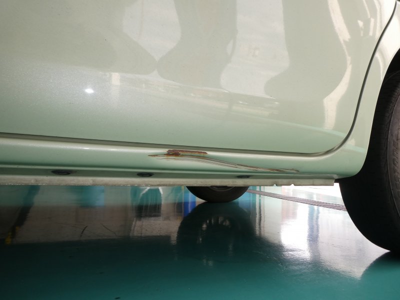 修理の箇所・ | サービス内容左ロッカパネルを縁石に接触し損傷 |