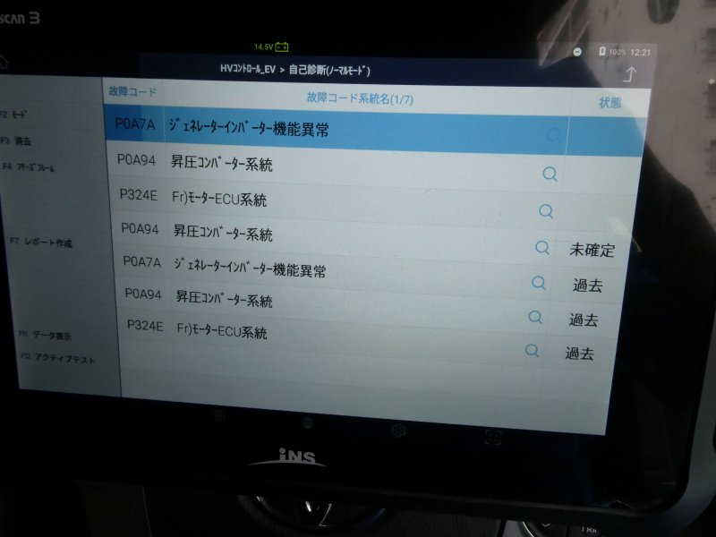 故障診断により、HV昇圧コンバーター系統異常との診断。