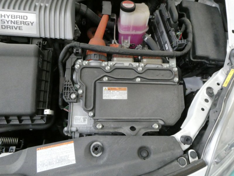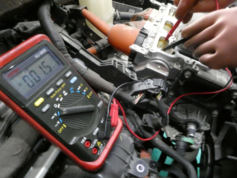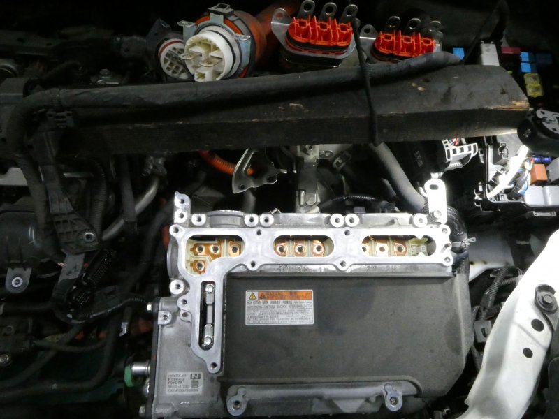 今回はエンジンルーム内にあるHVユニット、ミッションの上にある四角い大きいユニットの交換となる。こちらのユニット、残念ながらリビルト品がなく新品で調べるとコンバーターユニットが400,000円と高額であった。オーナー様と相談し、デメリット等のご説明をした上で何も保証がないこともお伝えし、中古品での対応をすることになった。部品交換後はリセット、および各設定を行い作業完了。