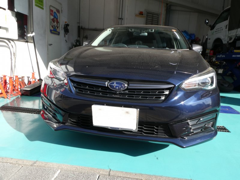 インプレッサ ダークブルーパール(スバル)のキズ・へこみ直し事例(フロントバンパ左側下部を縁石にこすってしまい損傷)神奈川県横浜市保土ケ谷区