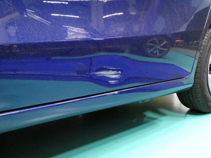 神奈川県横浜市保土ケ谷区|フィット (ホンダ)のキズ・へこみ直し事例(左サイドシル後方を縁石と接触し損傷)
