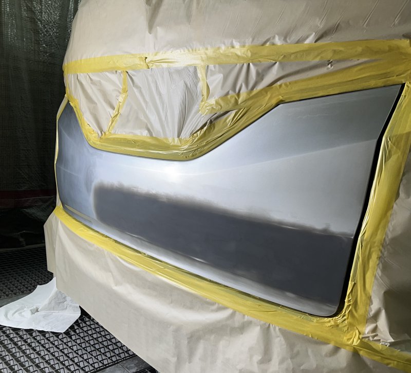 鈑金作業後、バックドアの表面を平滑にするための下地処理を行います。その後、オリジナルのカラーに合わせた塗料を塗布し、乾燥させます。塗装後には、保護のためのクリアコートを施し、仕上がりを美しく仕上げます。