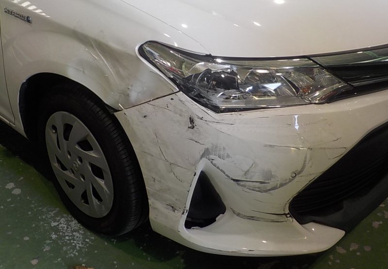 川越市 日高市 坂戸市 鶴ヶ島市 狭山市 ふじみ野市 トヨタ カローラフィールダー フロントバンパー フロントフェンダー 板金 鈑金 鈑金塗装 キズ へこみ直し 修理