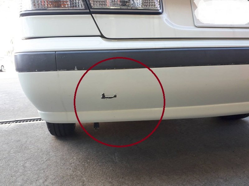 広島県広島市南区|サニー(日産)のキズ・へこみ直し事例(後ろのバンパースリキズ) 2025/10/29 - キズ・へこみ直し