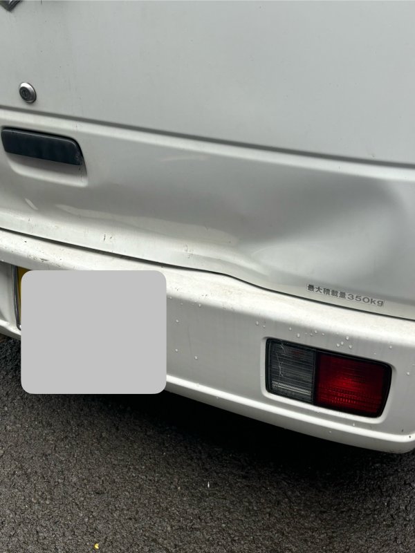 ハンドル操作を誤り、バックドアを衝突させてしまい、凹みができたため修理のご相談でお越しいただきました。変形も激しく修正は困難なため中古パーツ交換にて対応させていただきました。