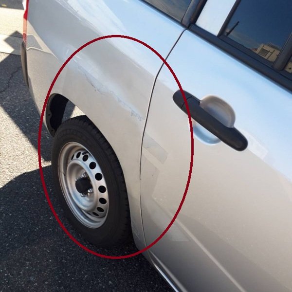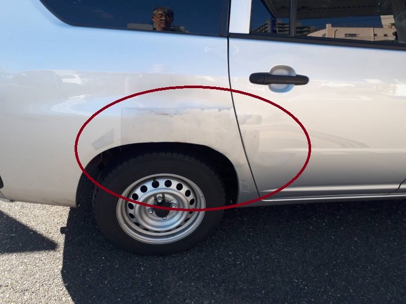 修理箇所は右側後ろのフェンダー部分(後ろタイヤの上の箇所)と後ろのドアです。