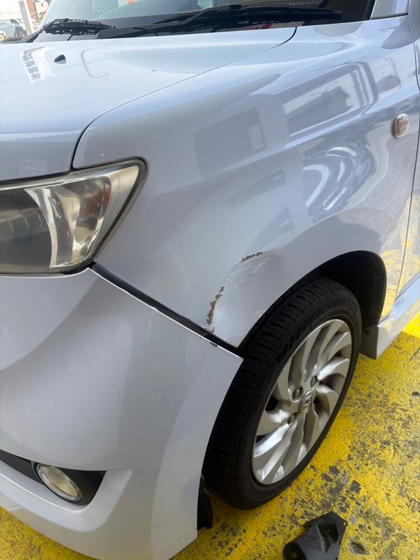 大阪市 東住吉区 トヨタ bB フェンダー ヘコミ修理 バンパー修理