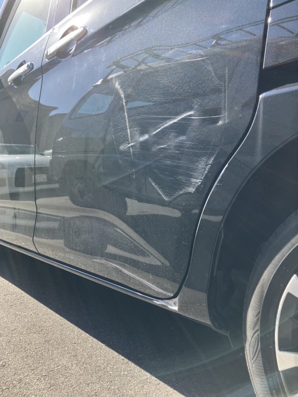 86の左フロントバンパーからリアフェンダーまでのほぼ左側全面の修理依頼でした。