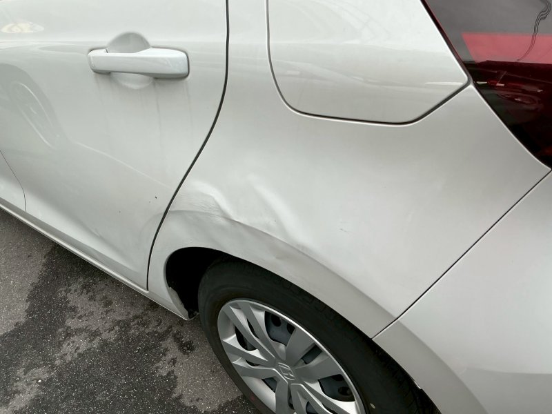 フィットのリアフェンダーに大きめのキズ・へこみが…。