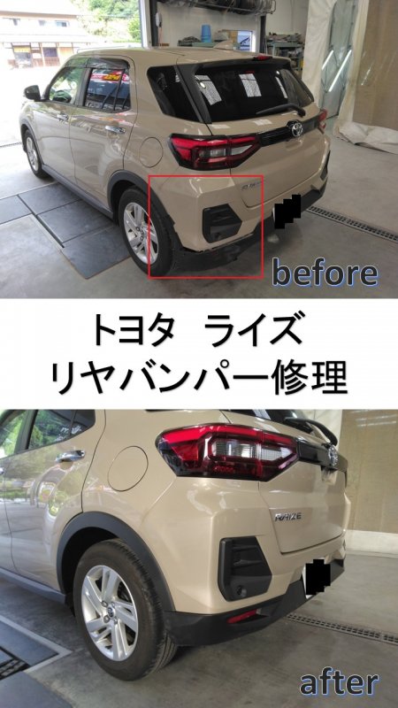 静岡県静岡市駿河区|ライズ(トヨタ)のキズ・へこみ直し事例(リヤバンパー交換修理)