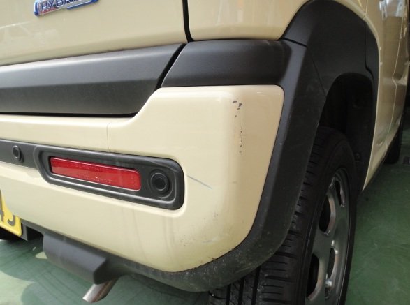 ご自宅の駐車場を出る際に壁を巻き込んでしまい入庫されました。今回は車両保険を使っての修理です