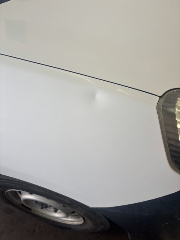 日産ADバンにお乗りのお客様よりフェンダー部分にヘコミが出来た為、修理のご相談で来店頂きました。