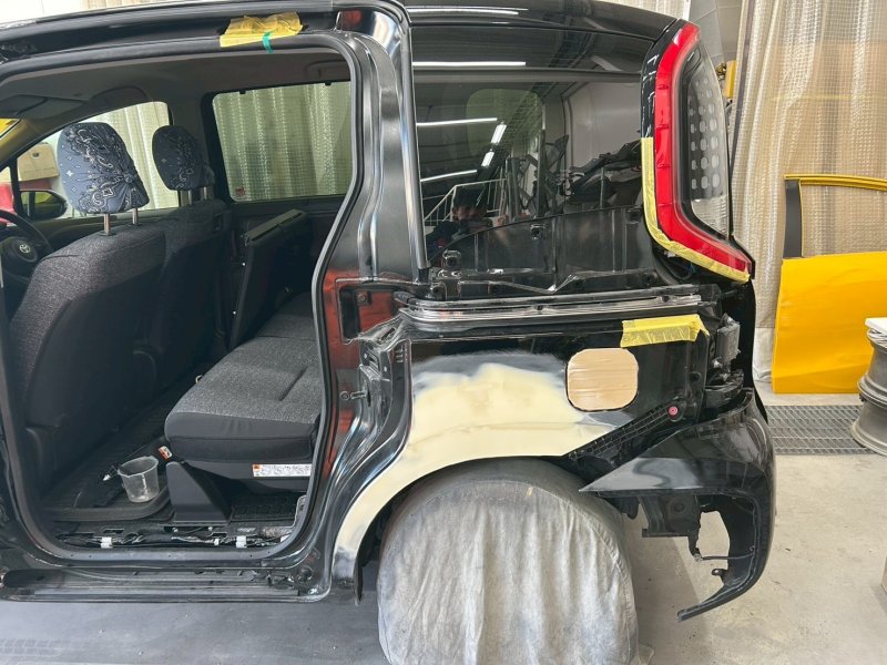 左スライドドア鈑金中の写真です