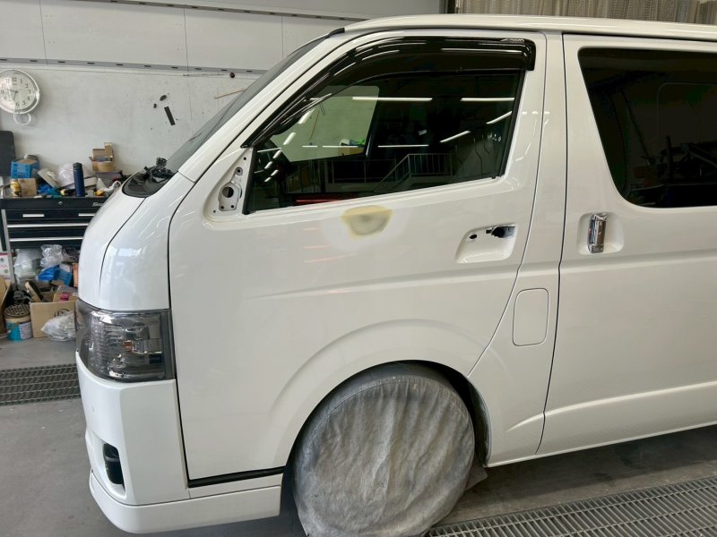 今回のハイエースは、ドアノブ、ミラー、水切りモール(下部分)の脱着しております。