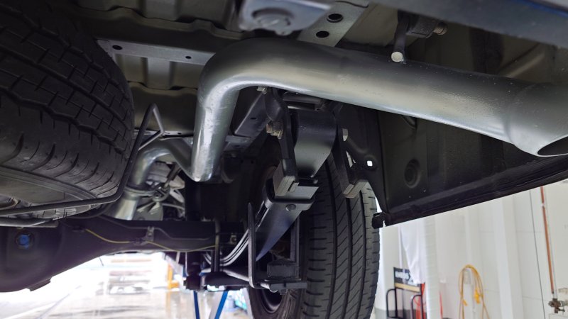 マフラーからの排気漏れがなければ、足回りのサビは車検とは関係ありませんが、釣りによく行かれるということで今回施行いたしました。