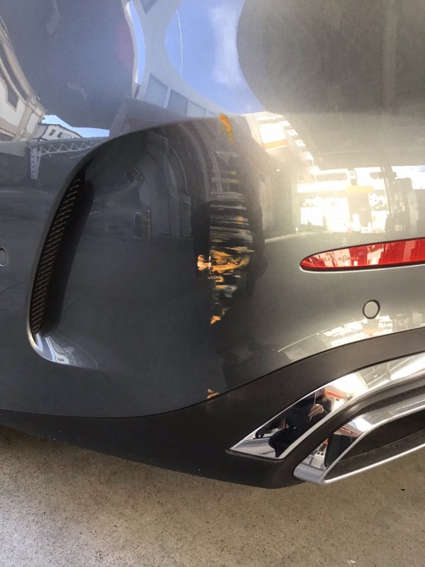 バンパーにもヘコミとキズがありました。キレイにプレスラインが潰れている状態でした。