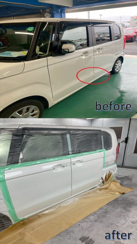 愛知県知立市|N-BOX(ホンダ)のキズ・へこみ直し事例(左側フロントドア、リヤドアキズへこみ修理になります。)
