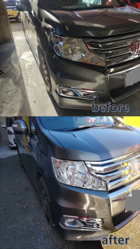 愛知県知立市|ステップワゴン(ホンダ)のキズ・へこみ直し事例(フロントバンパー、フロントフェンダー、ヘッドライト、)