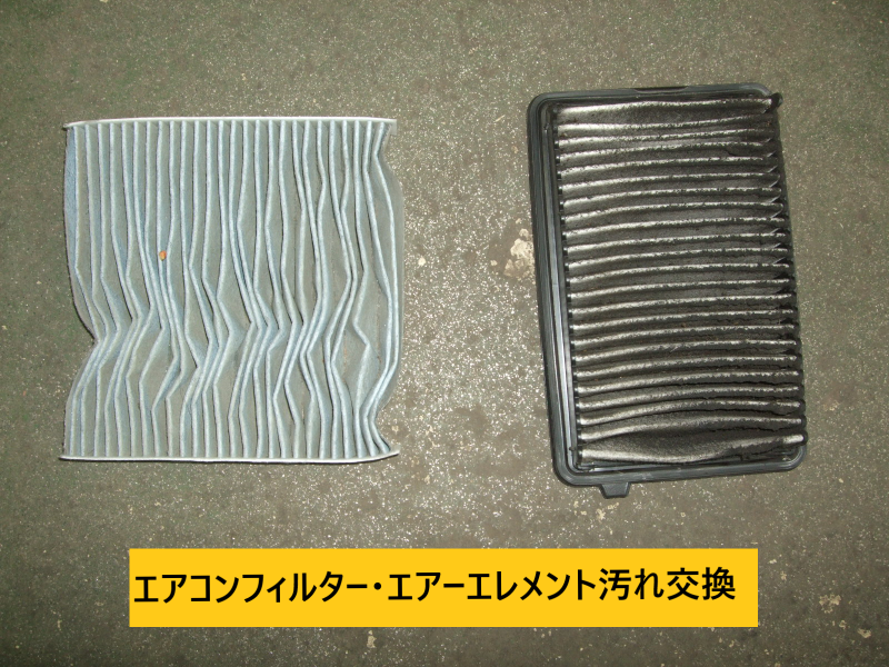 他に、スパークプラグの摩耗、エアーエレメントの汚れ、エアコンフィルターの汚れも確認されました。