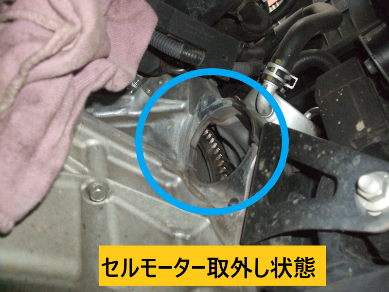 エンジンがかかると、セルモーターの飛び出したピニオンギアは、もとの位置に戻るのですが、今回はその戻りが悪くなり異音へとつながっていました。