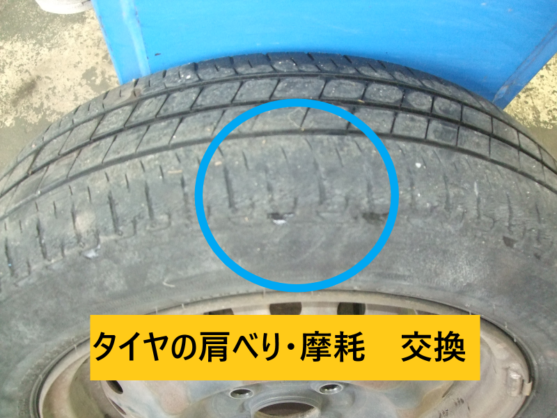 今回はタイヤが4本摩耗(肩べり)してることが確認されました。