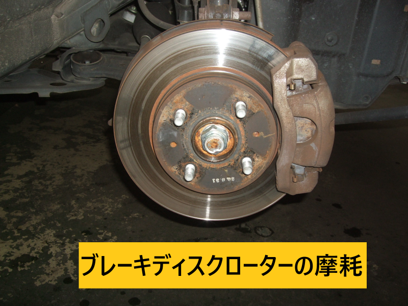 お客様のご依頼にもあったブレーキ鳴きですが、フロントブレーキのブレーキパッドだけでなく、ブレーキローターも摩耗してることが確認されました。