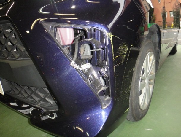 自宅駐車場に止める際に塀にぶつけてしまい入庫しました。