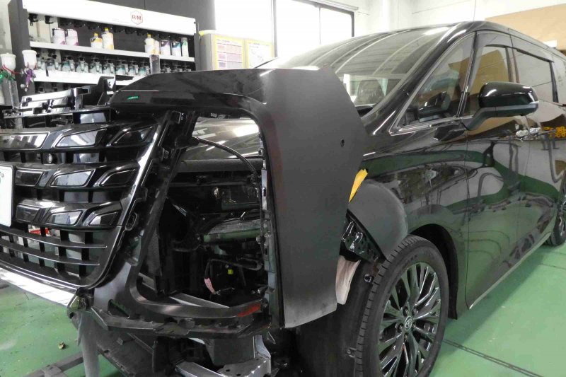 トヨタ ヴェルファイア フロントフェンダー フロントバンパー キズヘコミ修理│大阪市平野区 鈑金塗装 部分塗装