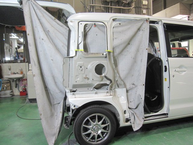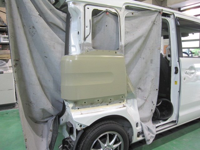 大阪市平野区 東住吉区 生野区 天王寺区 阿倍野区 東成区 鈑金塗装 ダイハツ タント 左フロントドア左リアドア 左クォーターパネル キズへこみ 板金修理 保険修理