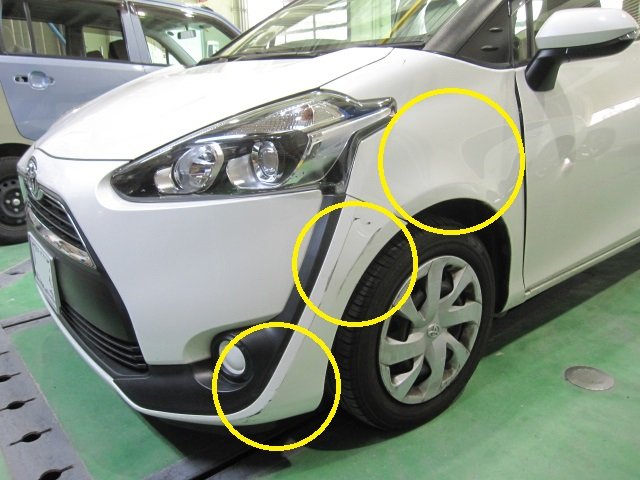 大阪市平野区にお住まいのN様より、トヨタ シエンタのフロントバンパー・フロントフェンダーのキズ・ヘコミ修理のご依頼をいただきました。