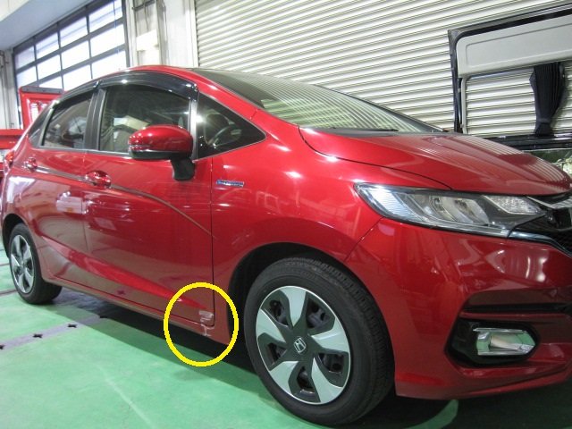 大阪市平野区にお住まいのN様より、ホンダ フィットのフロントフェンダー フロントドア ロッカーパネルのキズヘコミ修理のご依頼をいただきました。