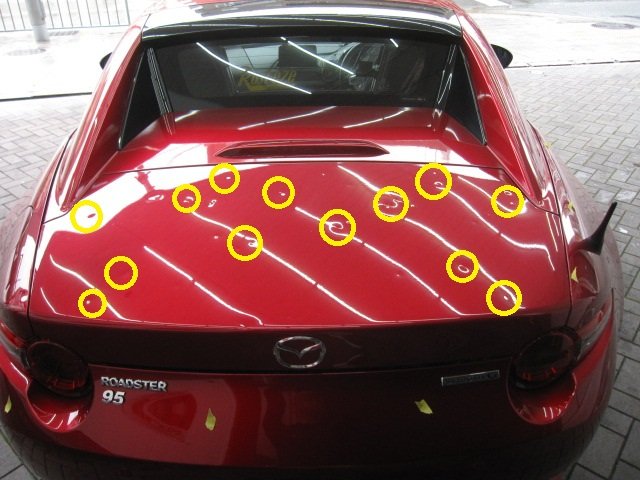 マツダ ロードスター 雹害 全塗装(オールペイント) キズヘコミ修理 │大阪市平野区 鈑金塗装 全塗装 保険修理