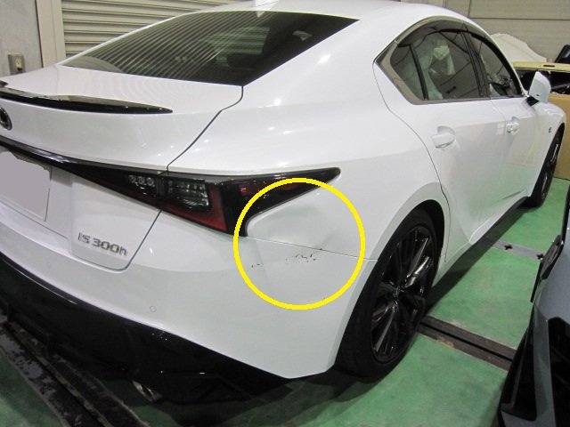 レクサス ISのクォーターパネル、リアバンパーのキズ・ヘコミ修理が完了しました。