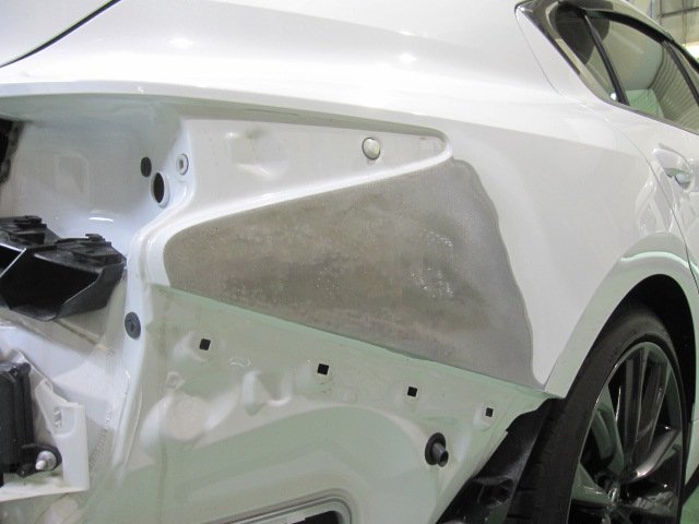 レクサス ISクォーターパネル リアバンパー キズ・ヘコミ修理│大阪市平野区 鈑金塗装