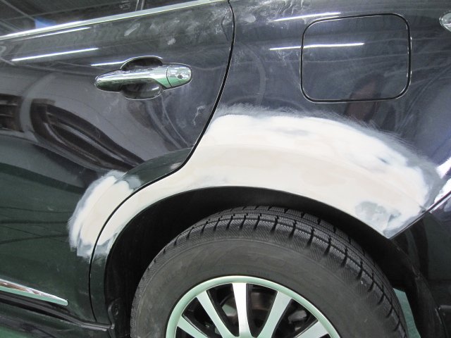 トヨタ ハリアー 左リアドア・クォーターパネル キズヘコミ修理│大阪市平野区 鈑金塗装