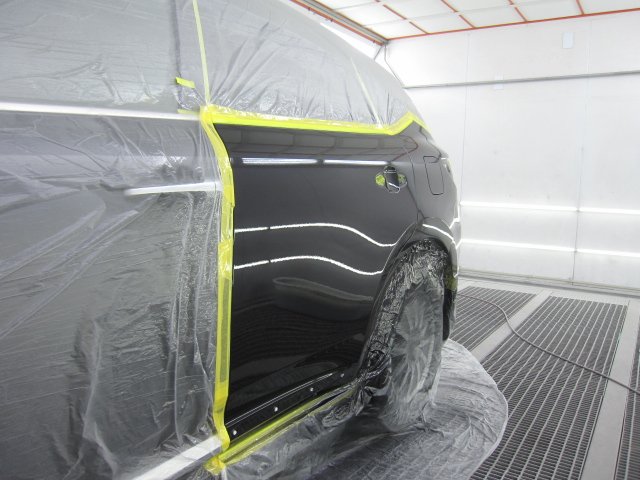トヨタ ハリアーの左リアドア・クォーターパネルの鈑金塗装(キズヘコミ修理)が完了いたしました。