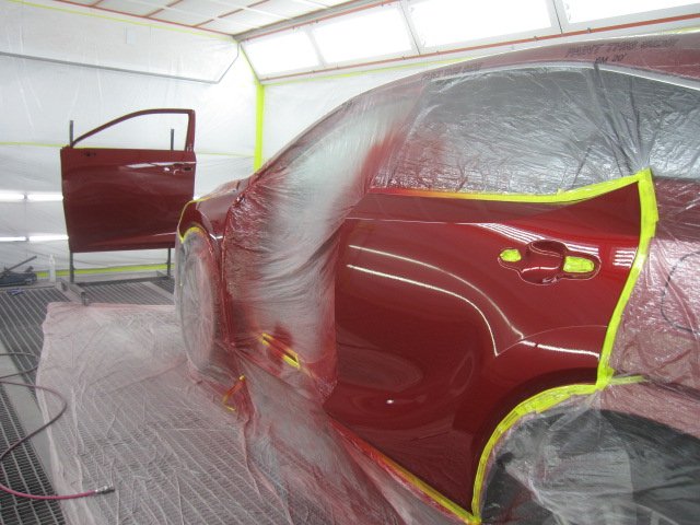 交換作業を終えたら塗装作業へ。はじめにサーフェーサーという下地処理剤を塗布。サーフェーサーは塗料の食いつきを良くする塗装時の必須アイテムです。下地が乾いたら、カラー塗装からのクリア塗装で作業完了になります。