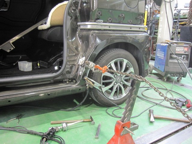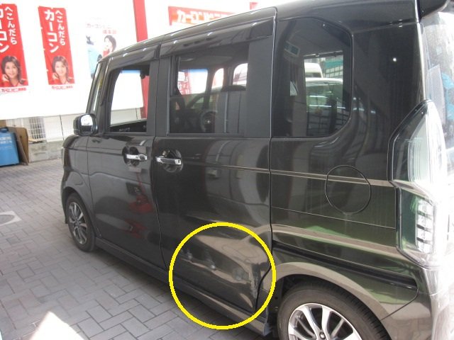 ホンダ N-BOX リアドア・クォーターパネル キズ・ヘコミ修理│大阪市平野区 鈑金塗装 保険修理
