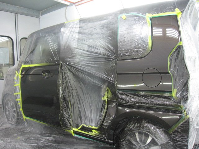 ホンダ N-BOXの左リアドア・クォーターパネルの鈑金塗装(キズヘコミ修理)が完了しました。
