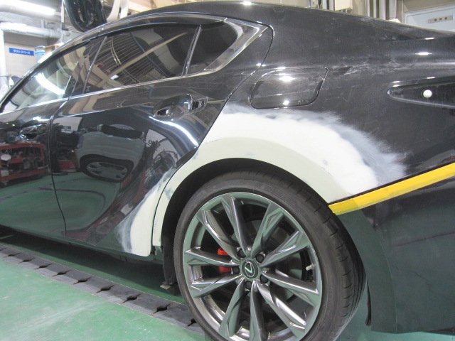 レクサス IS 左リアドア・左クォーターパネル キズヘコミ修理│大阪市平野区 鈑金塗装