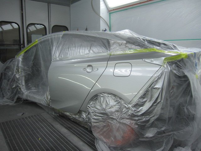 トヨタ プリウスの左側面事故の鈑金塗装(キズ・ヘコミ修理)が完了しました。