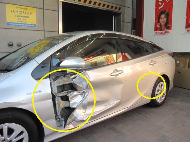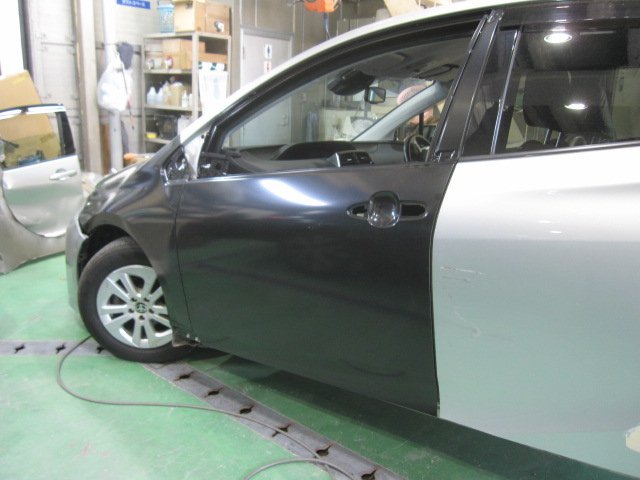 トヨタ プリウス 左側面事故 キズヘコミ修理│大阪市平野区 鈑金塗装 保険修理