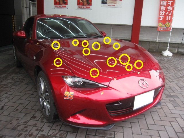 マツダ ロードスター 雹害 キズヘコミ修理 │大阪市平野区 鈑金塗装 全塗装 保険修理