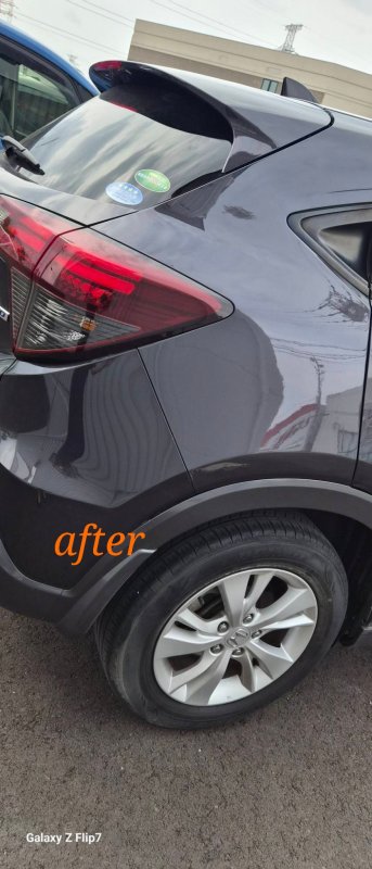 兵庫県宝塚市|ヴェゼル(ホンダ)のキズ・へこみ直し事例(右後ろタイア上の板金塗装)