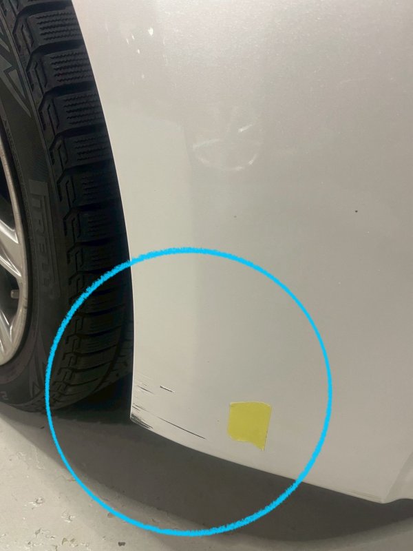 ホワイトの美しいボディだけに、バンパー角の擦りキズが目立ってしまっていました。